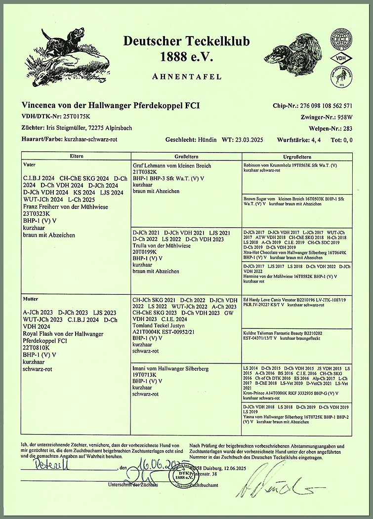 Urkunden von VINCENCA von der Hallwanger Pferdekoppel
